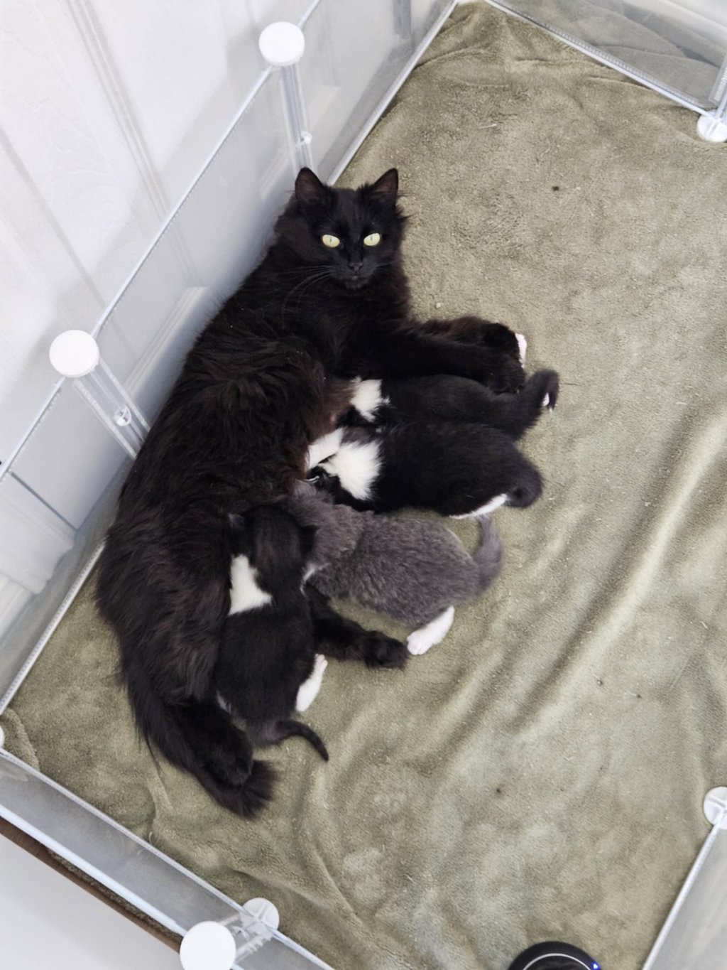 We spay female cats when the complete litter is surrendered to us for care and adoption.