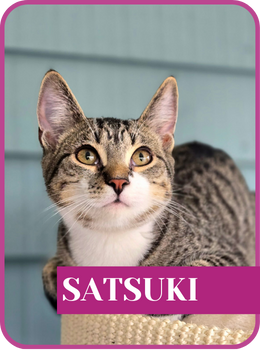 Satsuki is a bold and outgoing kitten who’s always ready to explore. She’s incredibly confident and curious, getting into everything and showing no fear. Whether she’s playing with her sister or investigating a new corner of the house, Satsuki brings energy and joy wherever she goes.