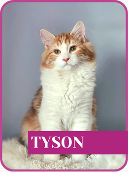 He may take time to warm up in a new environment, but once he feels safe, his sweet personality shines through. Tyson loves playing with other kittens and will thrive with a patient family who understands his need for slow introductions.